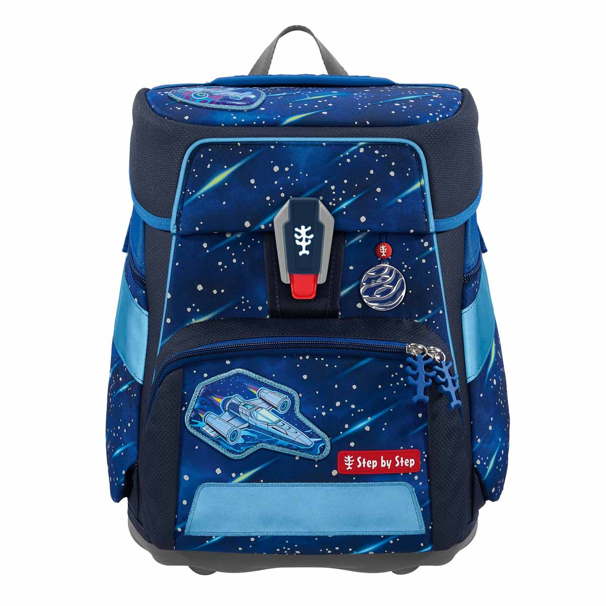 Der GIANT ist der große Schulranzen von Step by Step. Er ist perfekt geeignet für alle größer gewachsenen Kinder. Dank der schlanken und hohen Form fasst er 23 Liter und ist somit der perfekte Begleiter von der 1. bis zur 4. Klasse. Dies wird durch das EASY GROW SYSTEM gewährleistet, durch welches der Schulranzen höhenverstellbar wird und sich an die jeweilige Größe Deines Kindes anpassen lässt. Die wechselbaren Motive sorgen dafür, dass der Schulranzen Deinem Kind über die gesamte Grundschulzeit hinweg gefällt.Gewicht ca. 990 g, Volumen 23 Liter. 5-teiliges Set bestehend aus: Schulranzen, Federmäppchen, komplett bestückt, Schlamperetui, Sportbeutel, MAGIC MAGS (2 Magnetapplikationen und 1 Anhänger)