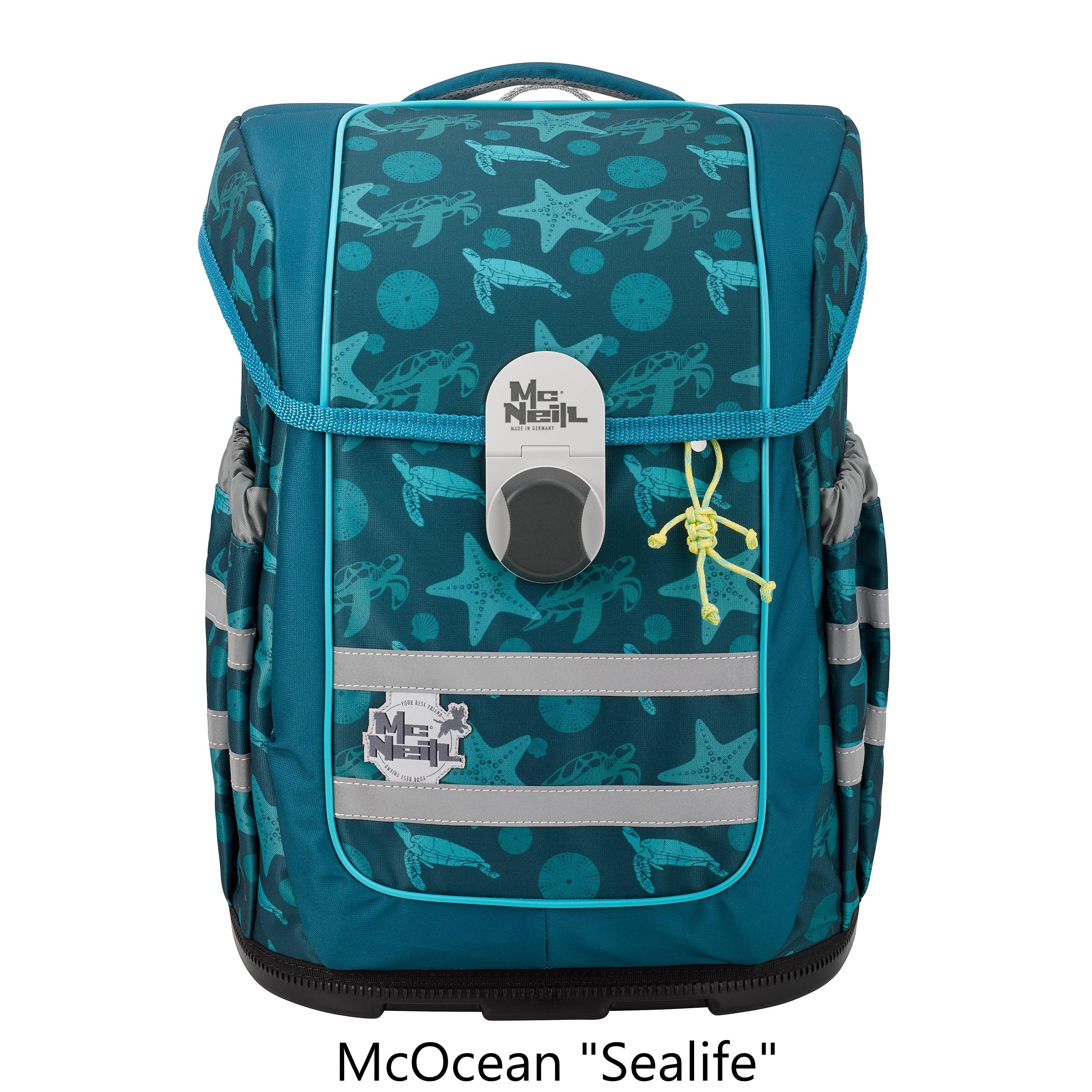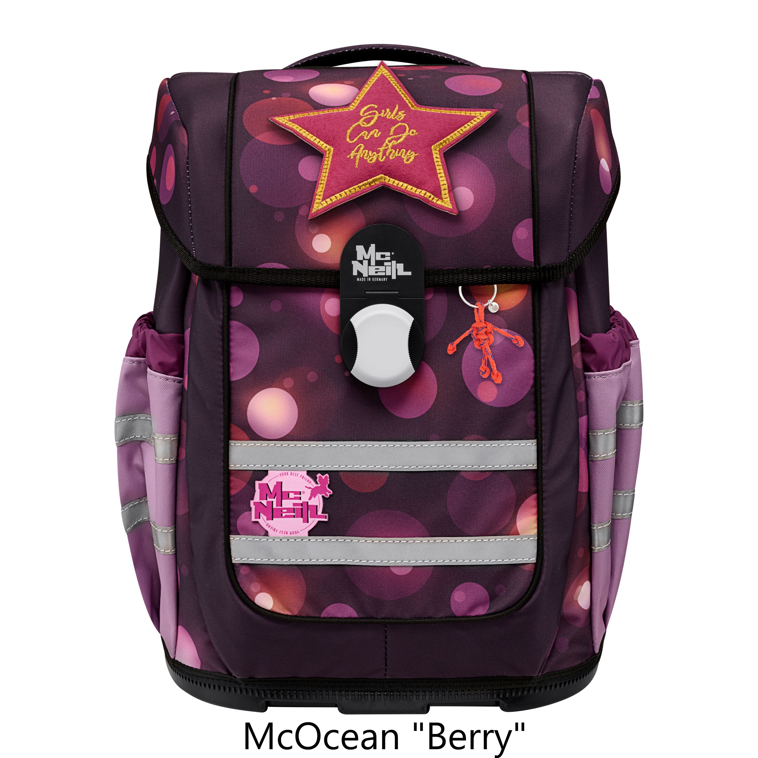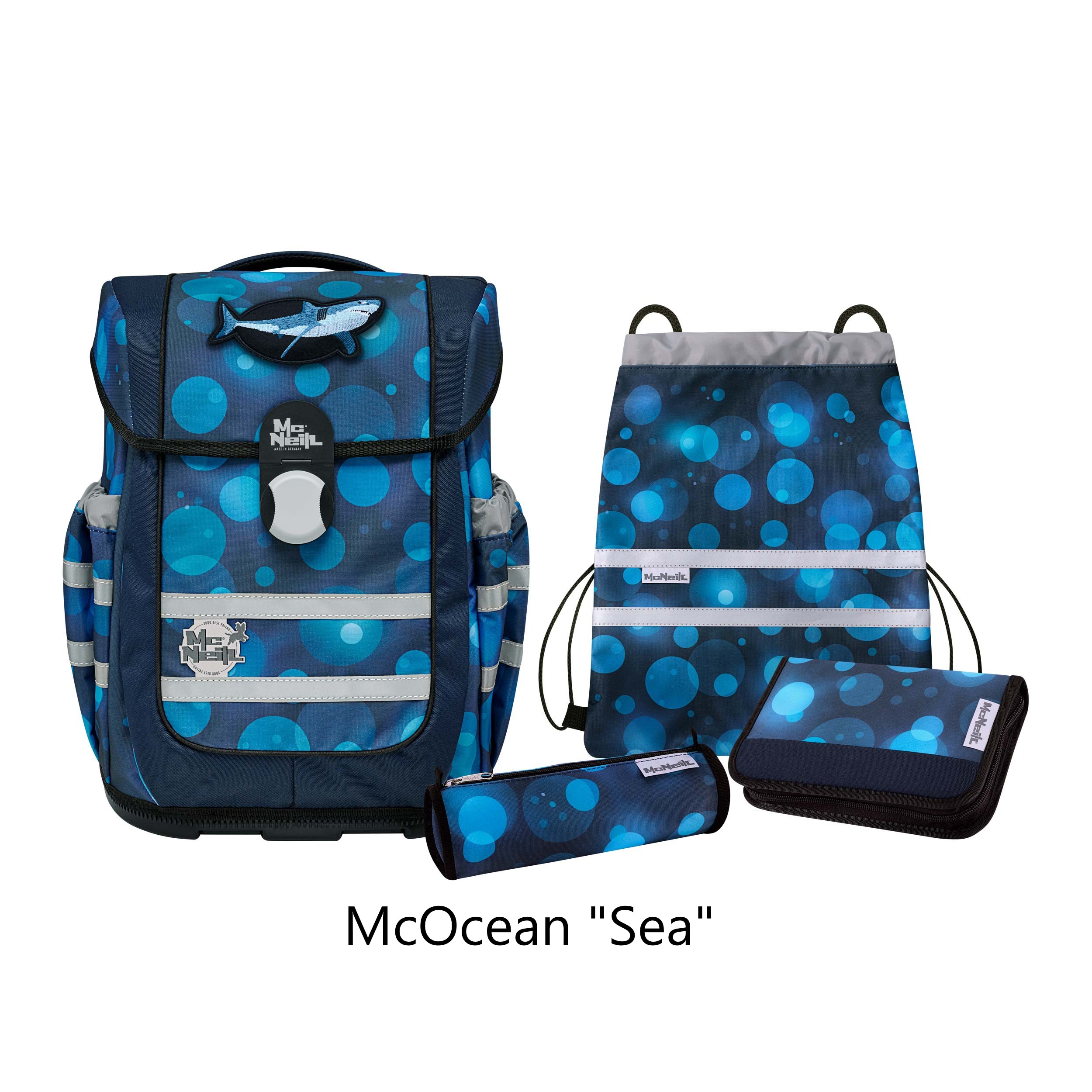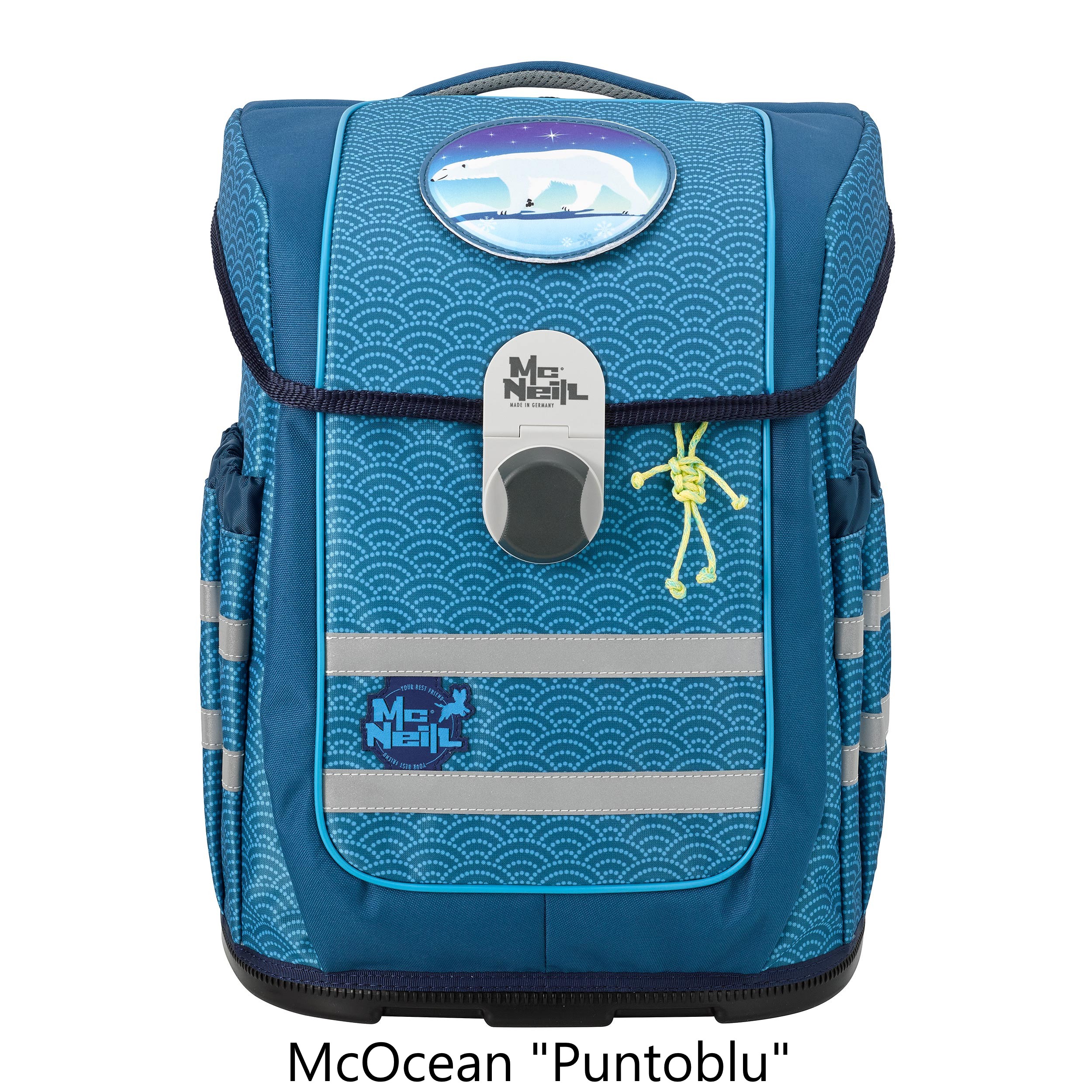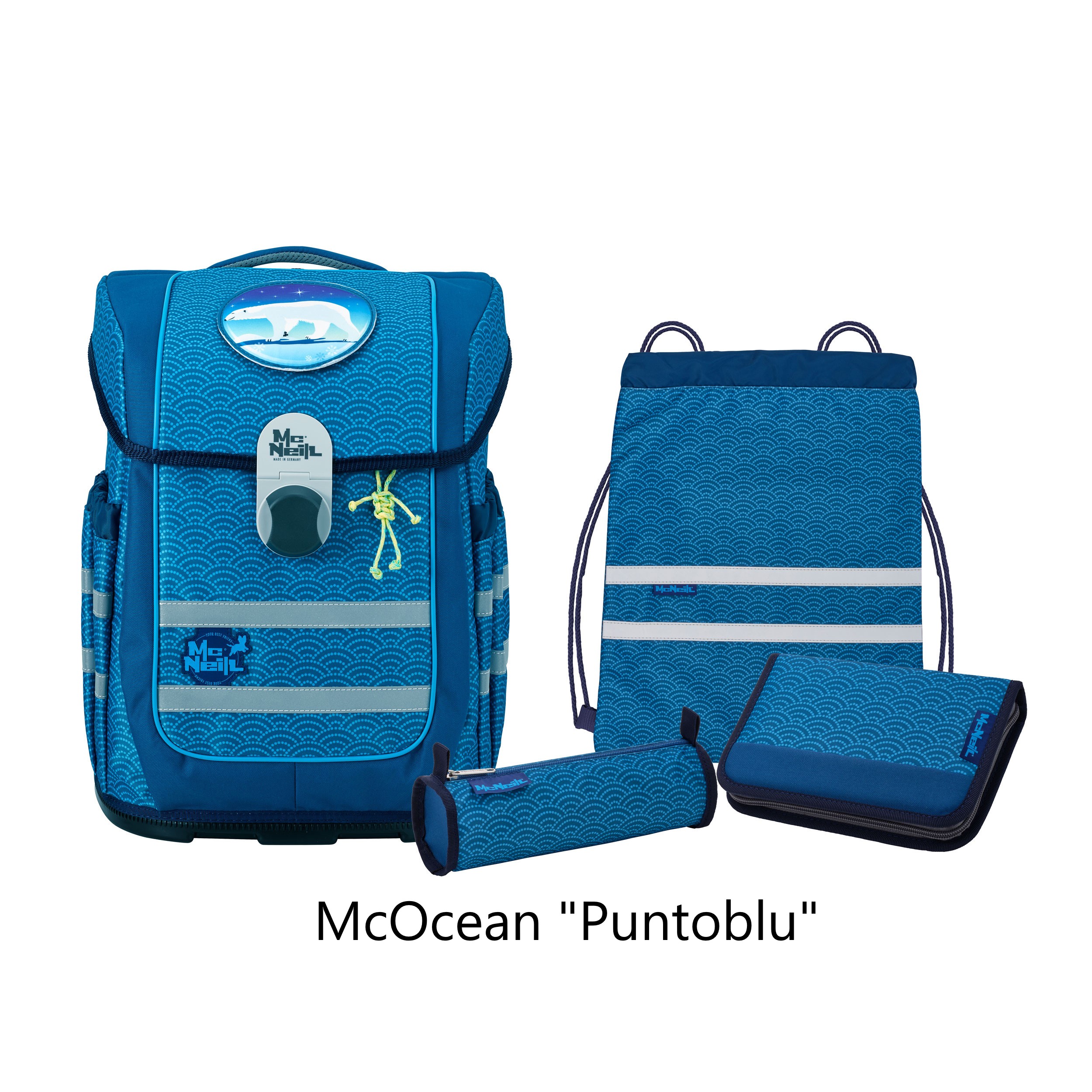 Gewicht ca. 1150 g, Volumen ca. 20 Liter. Als 5-teiliges Set mit Schulranzen, Sportschuhbeutel, Etui gefüllt, McAddy und Schlamperrolle.